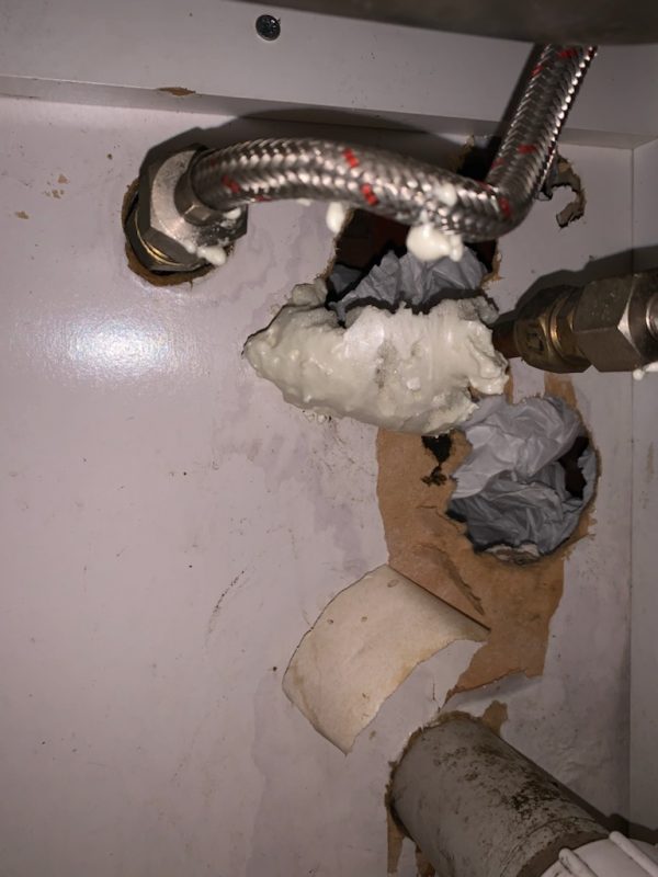 Upon investigation of the site, our technicians could see that there was a serious rodent issue in the works. It appeared that due to the cold weather, Norway Rats were entering the property via service penetrations beneath a sink inside the home. In this instance, the rats had actually caused extensive damage to the sink’s drain pipe. Rodent droppings were also present in the cupboard underneath the sink, in proximity to food storage and food prep surfaces.