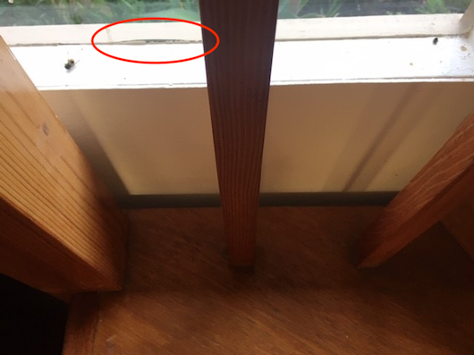 Small gap in window where wasps were entering